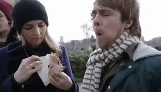 Emre and Sema in front of the Eiffel Tower in Paris, surrounded by colorful effects and a rainbow.
