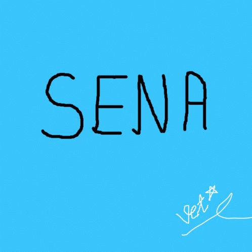 A digital drawing on a blue background, transitioning from the word 'SENA' to 'BAN' inside a heart shape.