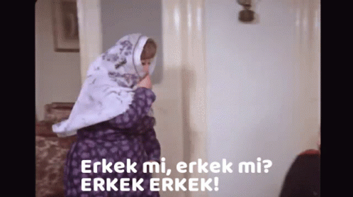 Şener Şen in a classic scene from Şekerpare, as a woman comically exclaims 'Erkek mi, erkek mi? ERKEK ERKEK!'