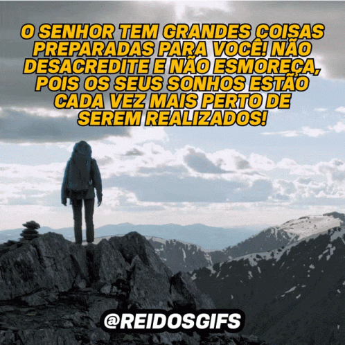 Inspirational message about God's plans and dreams coming true, featuring a person on a mountain peak.