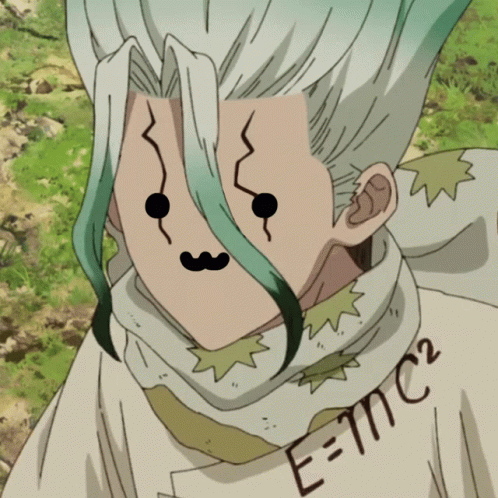 Senku from Dr. Stone enjoys a Lufer Drink, featuring his iconic E=mc² shirt and simplified face.