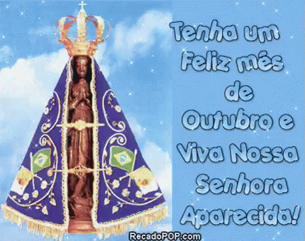Senyora Viva celebrates Our Lady Aparecida with a message for a happy October, featuring a glittery statue.