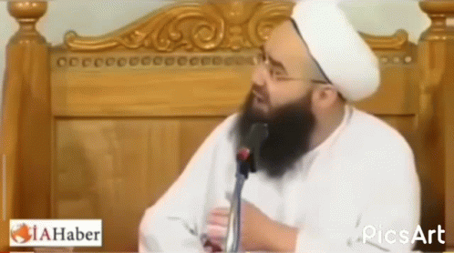 Sercank Hadi, a bearded religious scholar in a white turban and glasses, delivers a speech at a podium.