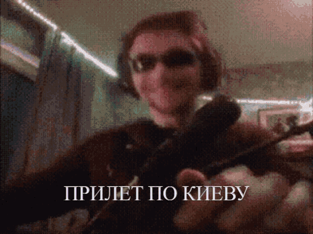 Serega Pirat holding a gun with the text 'Hit on Kyiv' displayed on screen.