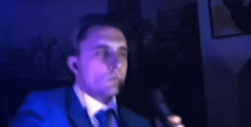 сергейстарых Magicstarykh enthusiastically dancing and making expressive gestures under blue lighting.