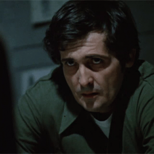 Father Karras, played by Jason Miller, gives an intense, serious stare in a scene from The Exorcist.