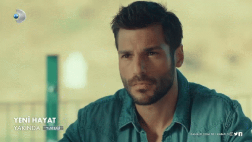 Serkan Çayoğlu in a promotional clip for the Turkish series Yeni Hayat, wearing a blue shirt.