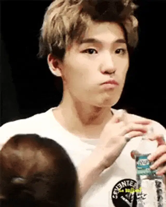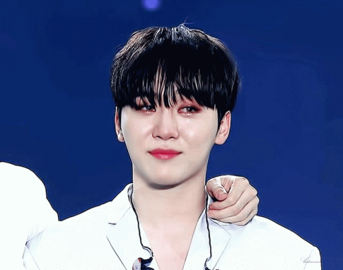 Seungkwan from Seventeen cries emotionally on stage, with tears visible and a supportive hand on his shoulder.