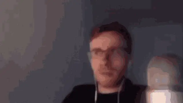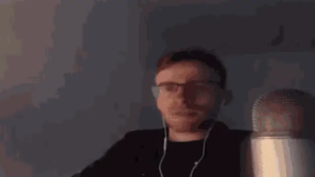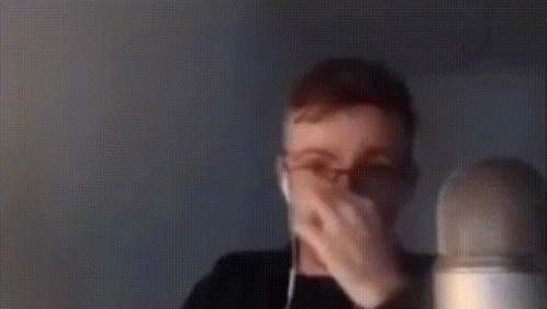 Шевцов, wearing headphones, reacts with surprise, covering his mouth before breaking into a wide smile.