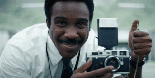 Tramell Tillman as a character from Severance, holding a camera and giving a thumbs up.