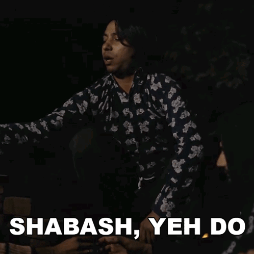 Prince Kashif in a floral shirt says 'Shabash Yeh Do' in a dark room.
