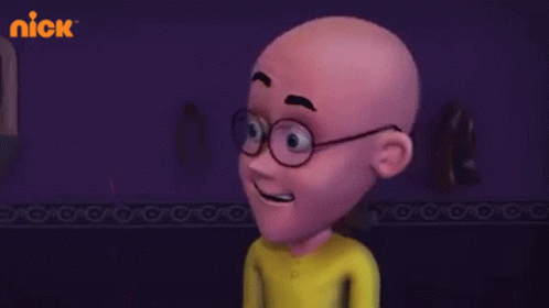 Patlu from Motu Patlu winks and gives a cheerful thumbs up, wearing glasses and a yellow shirt.