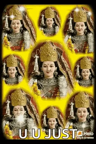 Animated greeting with Skanda Mata, full moon, sea, and roses, wishing Happy Sunday and Good Morning.