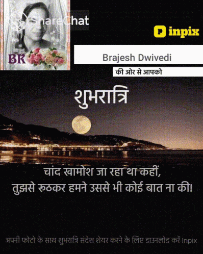 Brajesh Dwivedi shares a good night message with a moonlit scene and a heartfelt shayari.