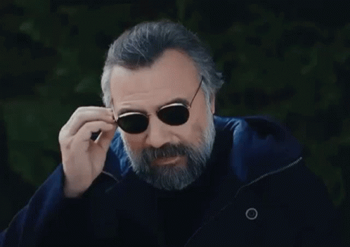 Oktay Kaynarca as Hızır Çakırbeyli takes off his sunglasses, revealing his intense gaze.