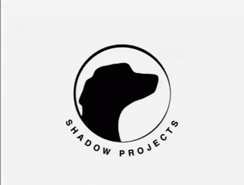 A black and white logo featuring a barking dog silhouette within a circle, with 'SHADOW PROJECTS' text.