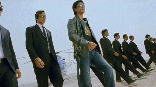 Shah Rukh Khan makes a stylish entry, marching with his squad of men in suits and sunglasses.