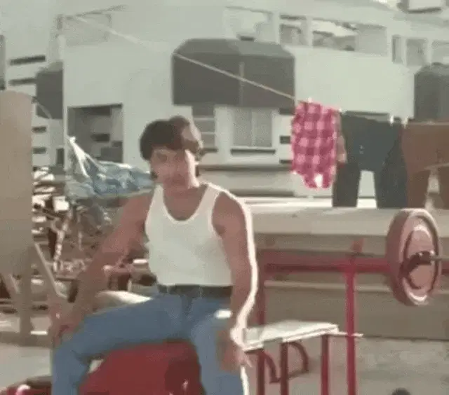 Kiron Kher emotionally holds Shah Rukh Khan's face in a heartfelt scene from the Bollywood movie Om Shanti Om.