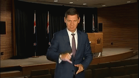 A man in a suit gives a shaka sign, then a double shaka, and smiles.