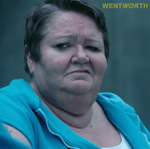 Lucy Gambaro from Wentworth shakes her head with a look of disbelief and disgust, expressing strong disapproval.