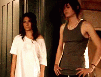 Shane McCutcheon and Carmen share an intimate moment, with Shane comforting Carmen in a doorway.