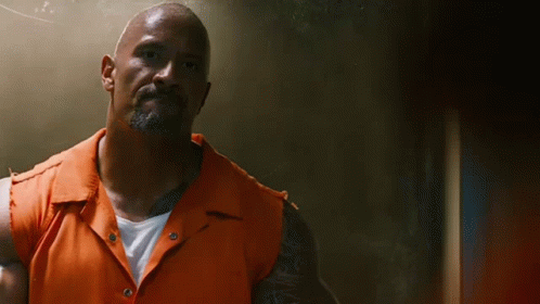Deckard Shaw, in a prison uniform, challenges someone to an old-fashioned fist fight.
