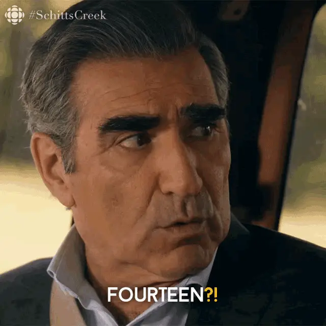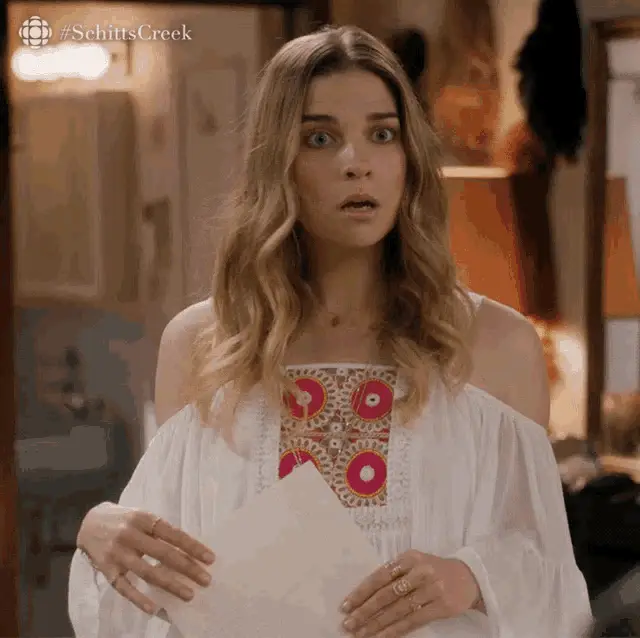 Moira Rose (Catherine O'Hara) delivers a classic line about an ageing stewardess from a Latvian airline.