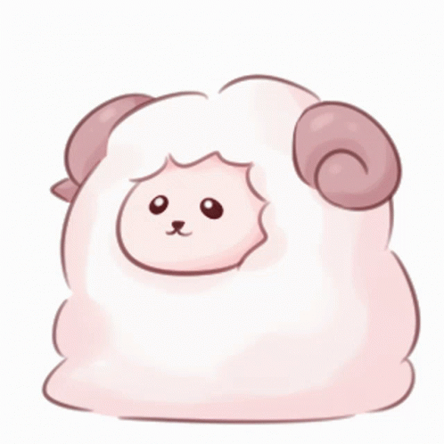 Adorable animated drawing of Tsunomaki Watame, a fluffy pink sheep with horns and a cute face.