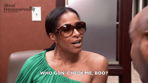 Sheree Whitfield from Real Housewives of Atlanta delivers her iconic line, "Who gon' check me, boo?"