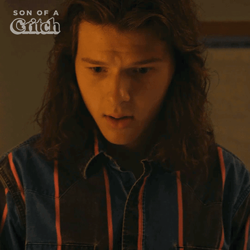 Mike Critch Jr. from Son of a Critch looks surprised as the caption 'She's perfect' appears on screen.