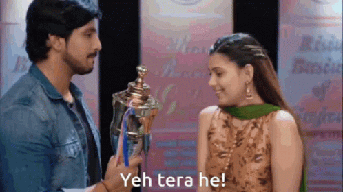 Shiva Pandya presents a trophy to Shivi, who happily accepts it saying 'Yeh tera he!' in this heartwarming moment.
