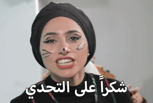 Zainab Al Eqabi, wearing cat makeup and a black turban, smiles and thanks for the challenge.