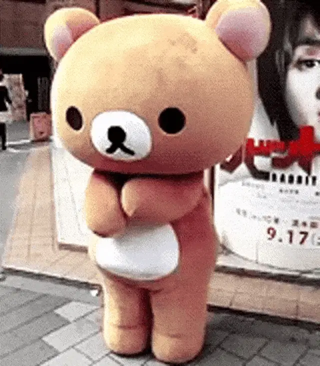 Shochan Doll, a cheerful cartoon character in blue overalls and a yellow shirt, laughing with an expressive, funny face.