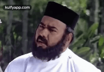 Malayalam Niyanpilla Raju, a priest, looks shocked and surprised, expressing strong emotion.