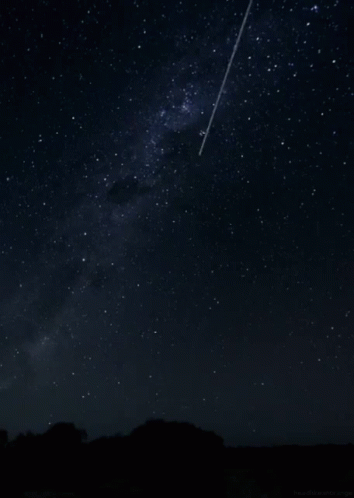 A bright shooting star streaks across the dark night sky, with the Milky Way visible in the background.