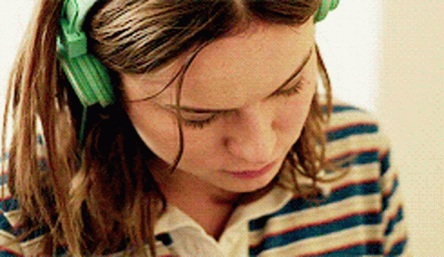Brie Larson as Grace Howard, wearing green headphones and looking down intently in Short Term 12.