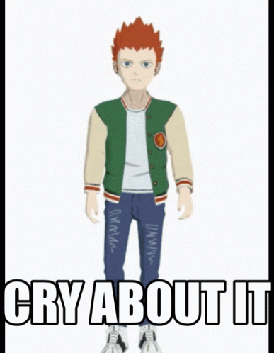 Shou Suzuki from Mob Psycho 100 with the text 'CRY ABOUT IT' in a popular meme format.