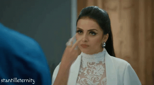 Shrenu Parikh from Ek Bhram Sarvagun Sampanna makes a 'watching you' gesture with her fingers.
