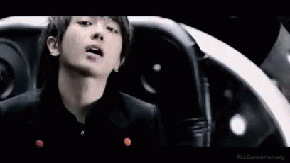 Japanese singer Shuta Sueyoshi of AAA, sitting in a car in a black suit, in a stylized music video.