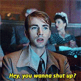 Captain America, also known as Steve, asks someone to be quiet in a theater with a frustrated expression.