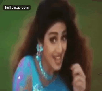 Sridevi, the iconic actress, smiles shyly in a blue saree, a memorable moment from Govinda Govinda.