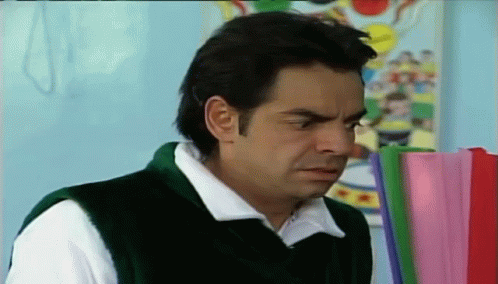 Eugenio Derbez as Ludovico Peluche looks concerned, wearing a green vest and white shirt.