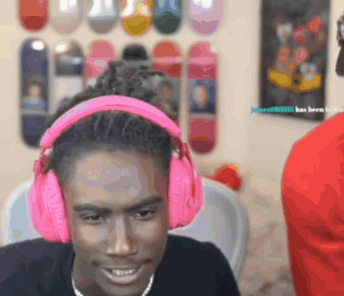 Osamason, wearing pink headphones, gives a humorous side eye expression to the camera.