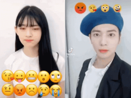 Sieunatics and Taehyun from TXTSTAYC participate in a fun Emoji Face Challenge on TikTok.