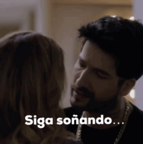 Charleimy and a man in a scene from La Reina del Flow, with the caption 'Siga soñando...' (Keep dreaming...).