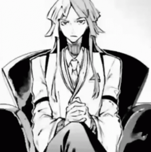 Anime character embodying the 'sigma' archetype, sitting intensely in a chair.