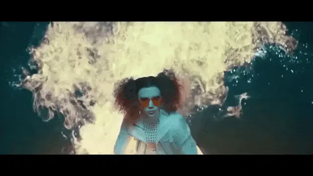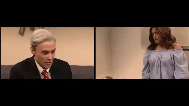 Silvia Duas Caras (Alinne Moraes) smiles, wearing a black shirt and earrings, next to a shelf with a soda can.