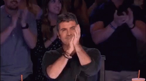 Simon Cowell gives two thumbs up and smiles, with the caption 'GOOD JOB SON!' from America's Got Talent.