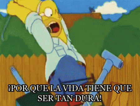 Homer Simpson from The Simpsons cartoon, frustrated and exclaiming, 'Why does life have to be so hard!'