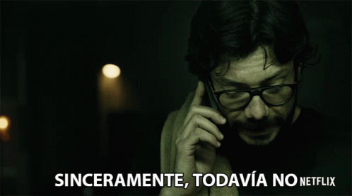 El Profesor from La Casa de Papel on the phone, with the text 'Sinceramente, Todavía No Netflix'.